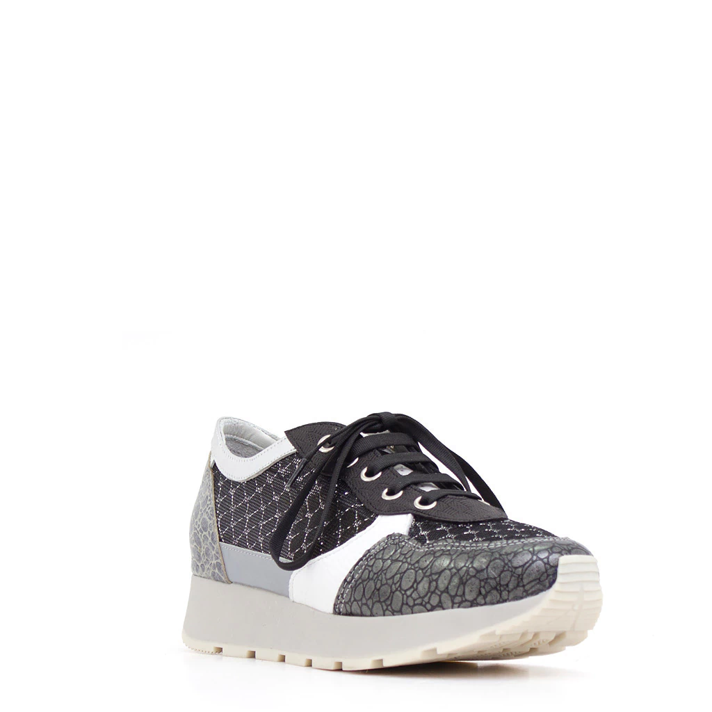 Zapatillas realizadas con variedad de cueros de negro, blanco colores y biyone. Cordones negros. Forro cuero vacuno. Base goma antideslizante Plantilla y lengueta acolchada.