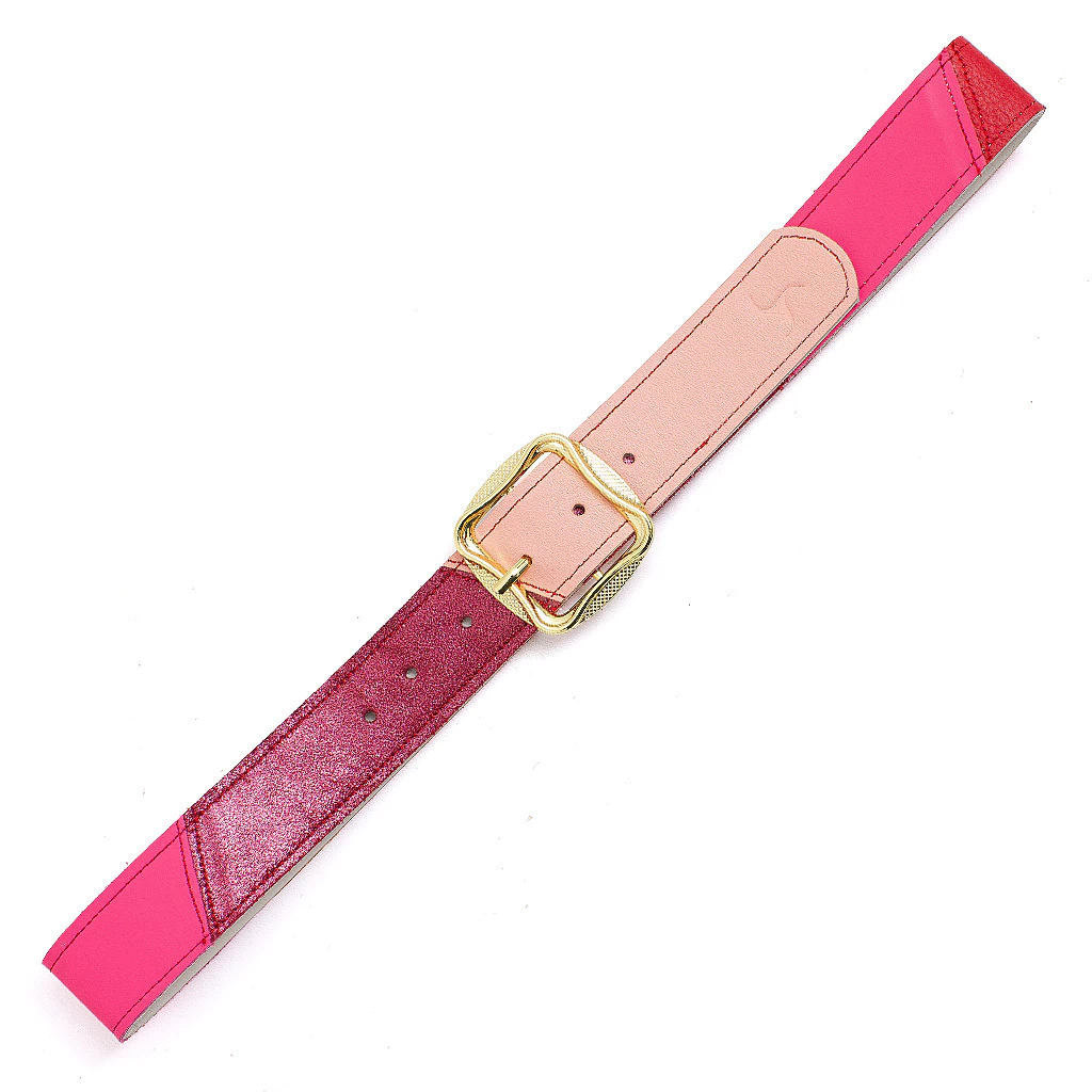 Cinturón realizado de forma artesanal en su corte y costuras combinando cueros en gama y texturas. Con hebilla oro. Medida pase 4 cm.