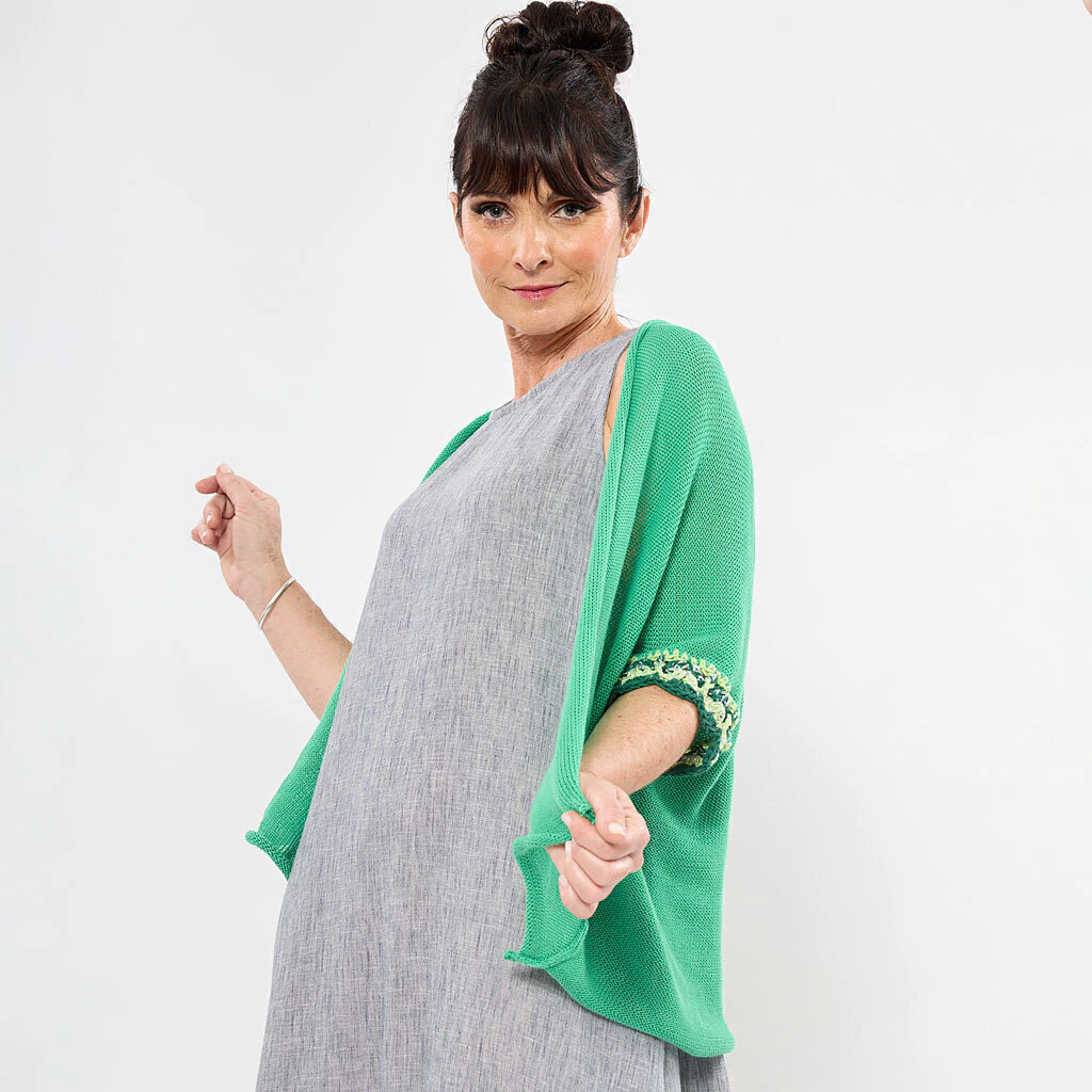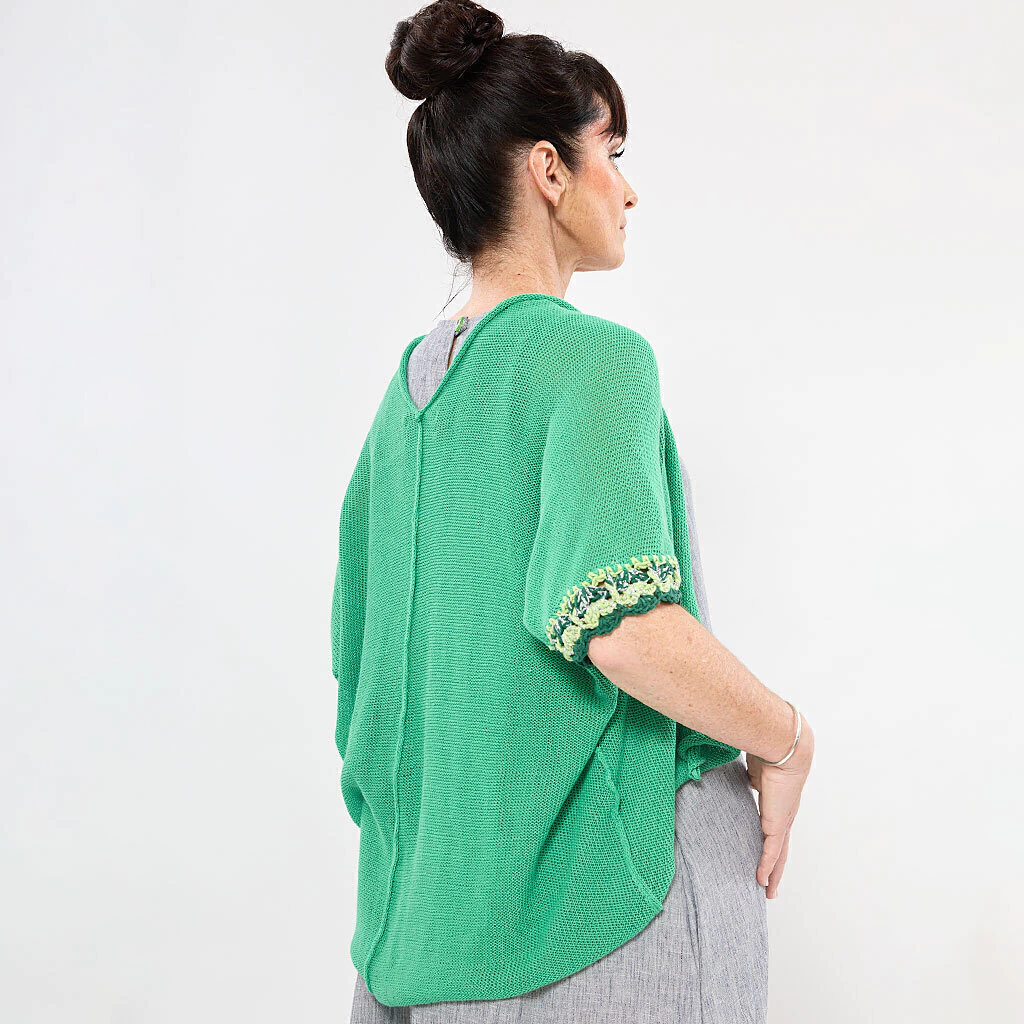 T U: Busto frente 62 cm. Largo total 56 cm. Largo de mangas (de cuello a puño) 48 cm.