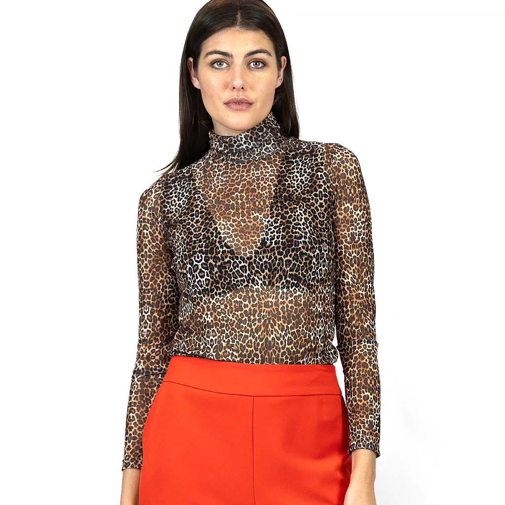 Polera cuello doble volcado, realizada en microtuldeseda, estampa chita.