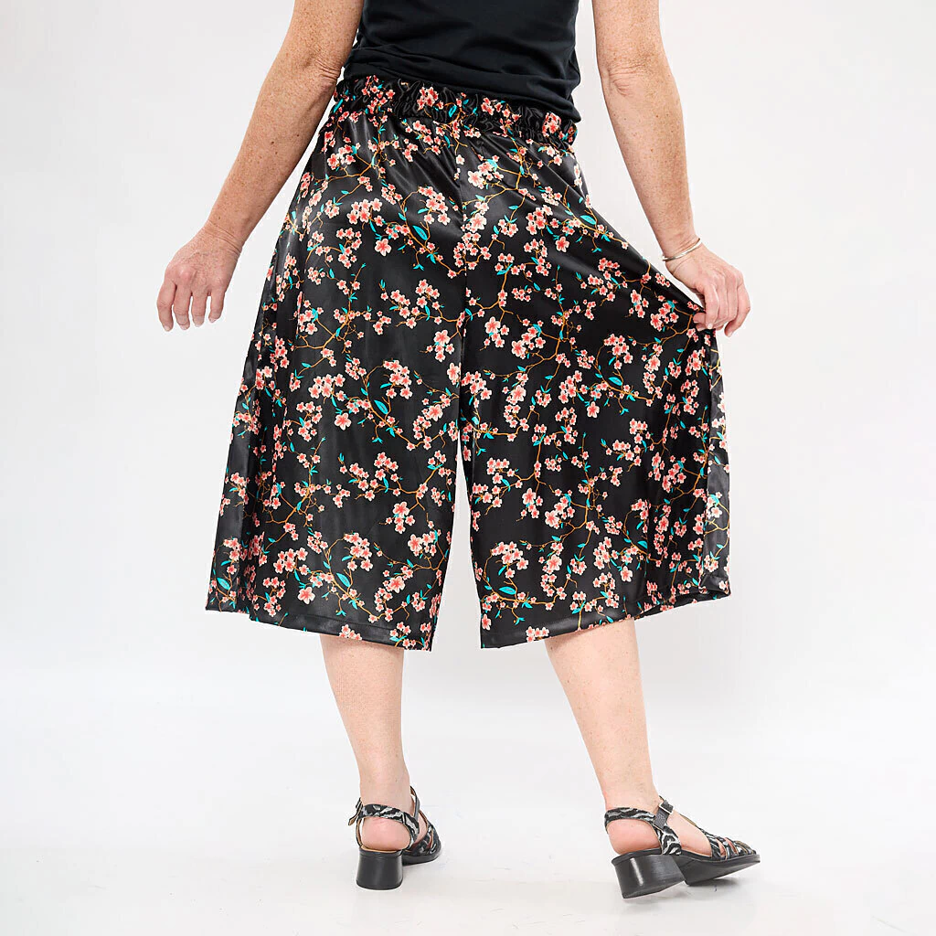 Falda Pantalon, de calce super comodo y largo midi. Género: saten estampado.